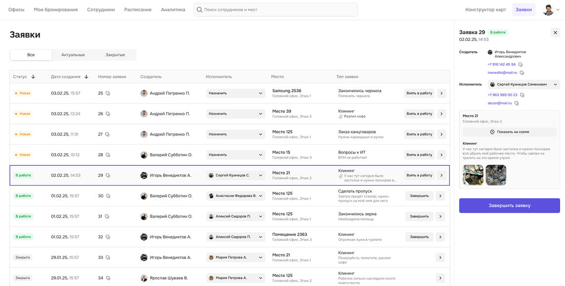 Исполнитель видит место заявки на схеме этажа и не тратит время на поиск объекта, что сокращает общий срок решения заявки.