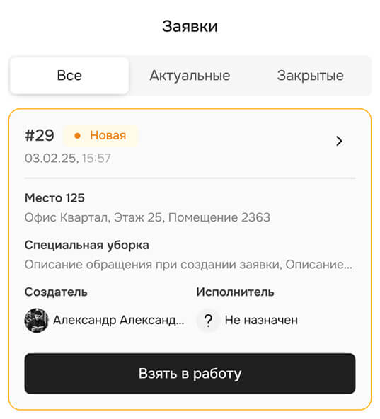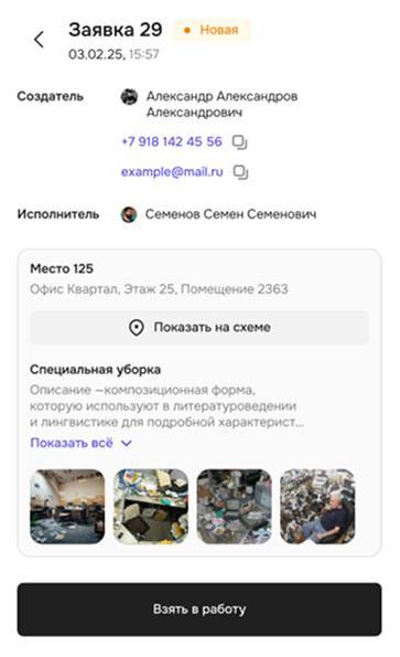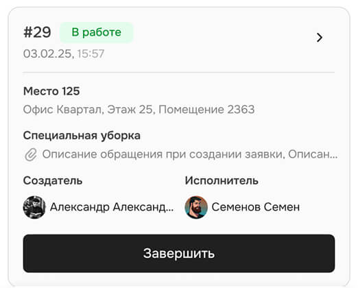 В карточку обращения уже прикреплено фото и описание проблемы, поэтому сотрудник заранее берет нужный инвентарь и не совершает пустые выезды.